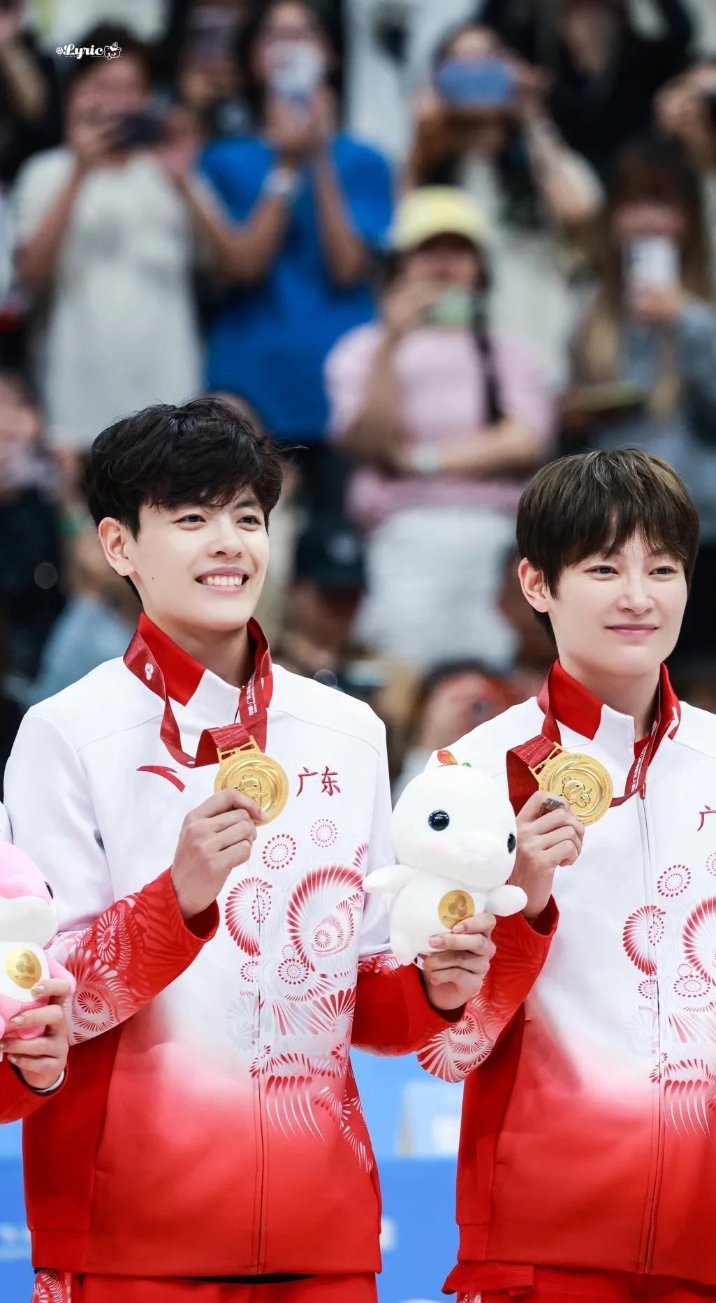 颁奖仪式上,她们不约而同地摘下金牌,一起挂在赶来现场的母亲脖子上,轻轻亲吻母亲的脸颊,那份对母亲的感激和对父亲的思念,尽在不言中。